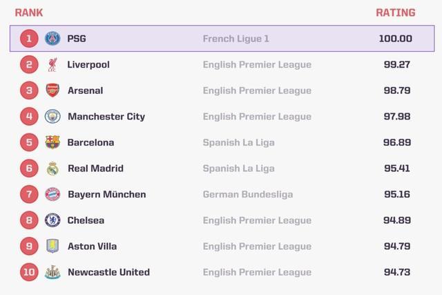 实力超群,难寻敌手!巴黎圣日耳曼强势登顶全球俱乐部实力榜榜首
